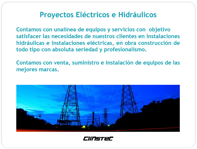 Servicios Industriales, Proyectos eléctricos, Instalaciones eléctricas, Construcción, Venta de equipos industriales, Atención a Servicios de Agua Potable Rural 24 Horas.